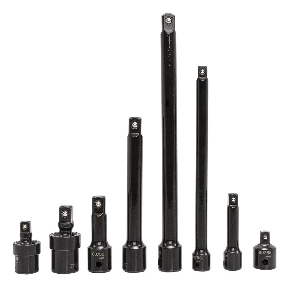 - 1/2-In drive impact accessories include a 3-in extension, 6-in extension, 10-in extension, a 1/2×3/8-in adapter and a 1/2-in drive swivel adapter