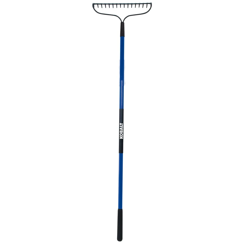 The Kobalt fiberglass handle bow rake is designed to loosen and level soil to prepare garden beds, spread mulch or ground cover, and clear yard debris. For completing regular yard maintenance or taking on a large landscape project, this bow rake will get the job done with cushioned grips, forged steel tines and sturdy fiberglass handle.