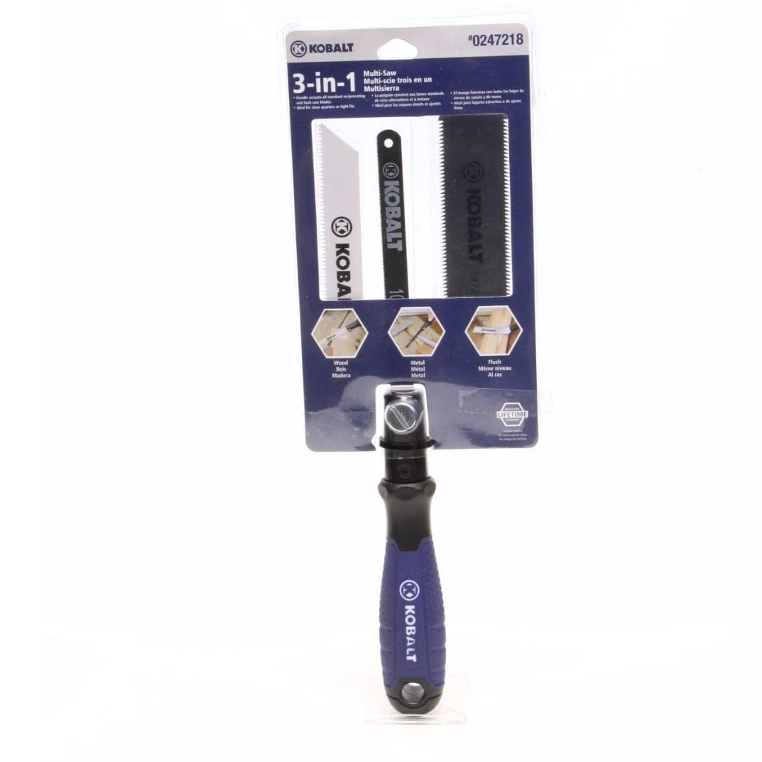 The Kobalt multi-purpose saw utilizes a quick blade change design making quick and simple blade changes possible on job site locations. This saw is compatible with most reciprocating saw and hacksaw blades. The saws versatility makes cutting through various materials hassle free.