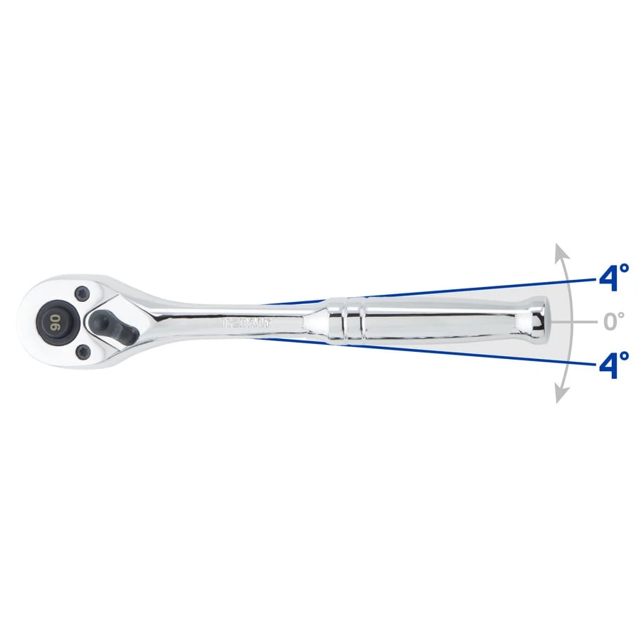 - Quick-release button on the 90-tooth ratchet allows for rapid socket and accessory change