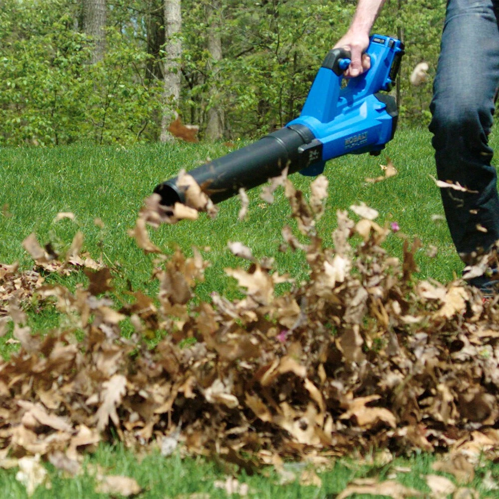 The Kobalt 24-Volt Max Leaf Blower and String Trimmer Combo Kit helps keep your yard neat and tidy. The string trimmer’s 12 inch cutting swath and dual line feed increase cutting efficiency, while it’s bump head makes it easy to advance line for continuous use. The leaf blower’s turbine fan produces 410 CFM to quickly corral fallen and debris so you don’t have to rake, and it’s removable tube makes storage convenient. The interchangeable 24-volt battery offers lasting power and run time, and high efficiency brushless motors offer durability to easily tackle outdoor chores. Variable-speed triggers on both tools allow you to set the power to suit the task for maximum control. Yard work just got easier with the Kobalt Leaf Blower and String Trimmer Combo Kit.