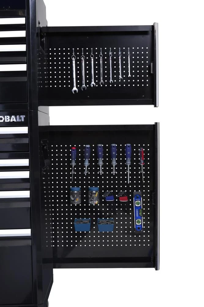 - Innovative vertical pegboard drawer allows for quick access to tools and accessories