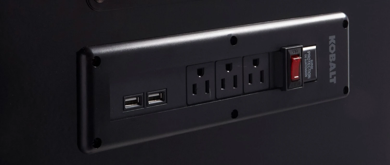 - Access grommet under lid in top chest storage area allows you to plug in and secure your favorite electronics or charge your power tools